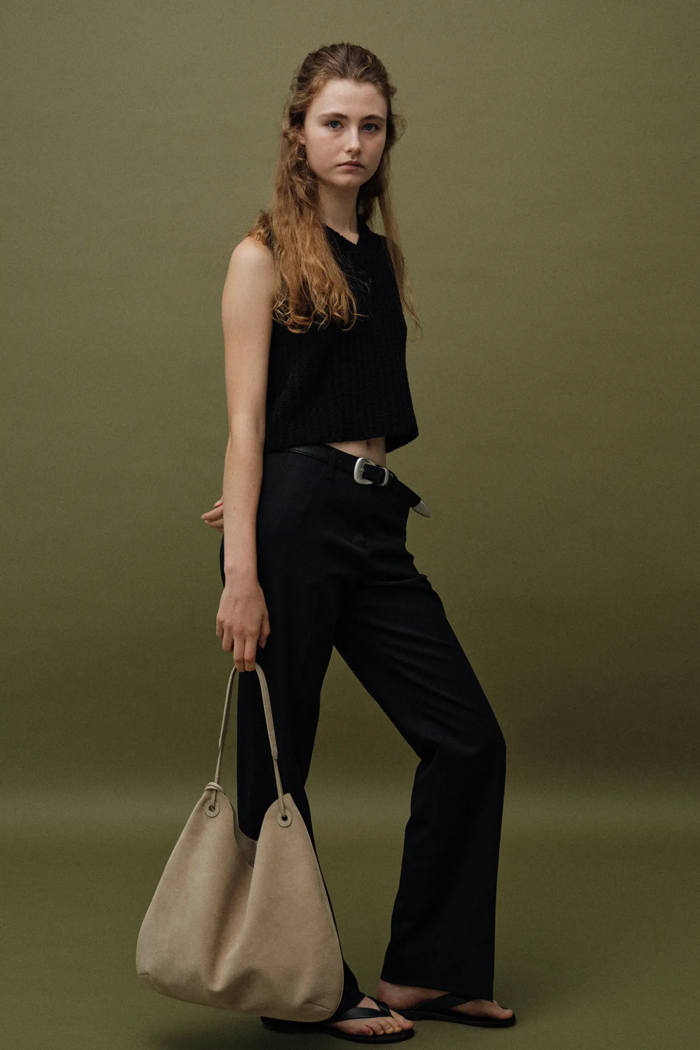 This is a suede hobo bag with a soft texture. The unique delicate texture and subtle gloss add to the sophisticated charm and create a luxurious and comfortable feeling. The lines that are naturally caught when worn create a comfortable look, and the overall curved outline design emphasizes an elegant yet soft silhouette. It comes with a card holder with two detachable card slots that satisfies both practicality and design, and it is tied to the shoulder strap so that it can be easily separated and used as needed, and it acts as a point of the bag itself. It can be easily opened and closed using the magnet lock, and it is an item that adds luxury to everyday styling.