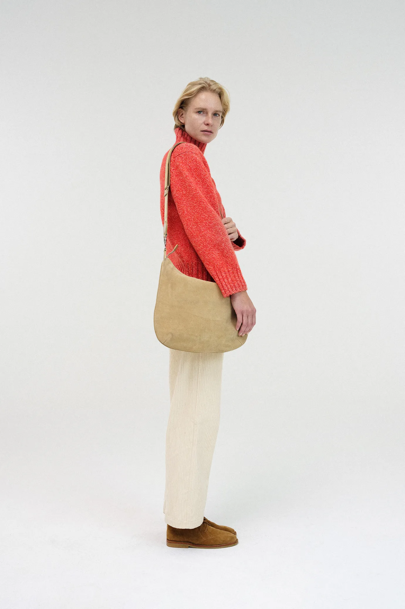 This is a bokash knit turtleneck with a relaxed silhouette overall.It is a basic item that maintains body temperature from the cold wind with a high turtleneck design and is highly utilized with a generous silhouette. It is made of 100% WOOL material, which is characterized by solid organization and excellent warmth, and offers a warm winter mood by combining Bokashi’s natural and cozy material. It creates a voluminous silhouette with a wide finish to the sleeves and hem.