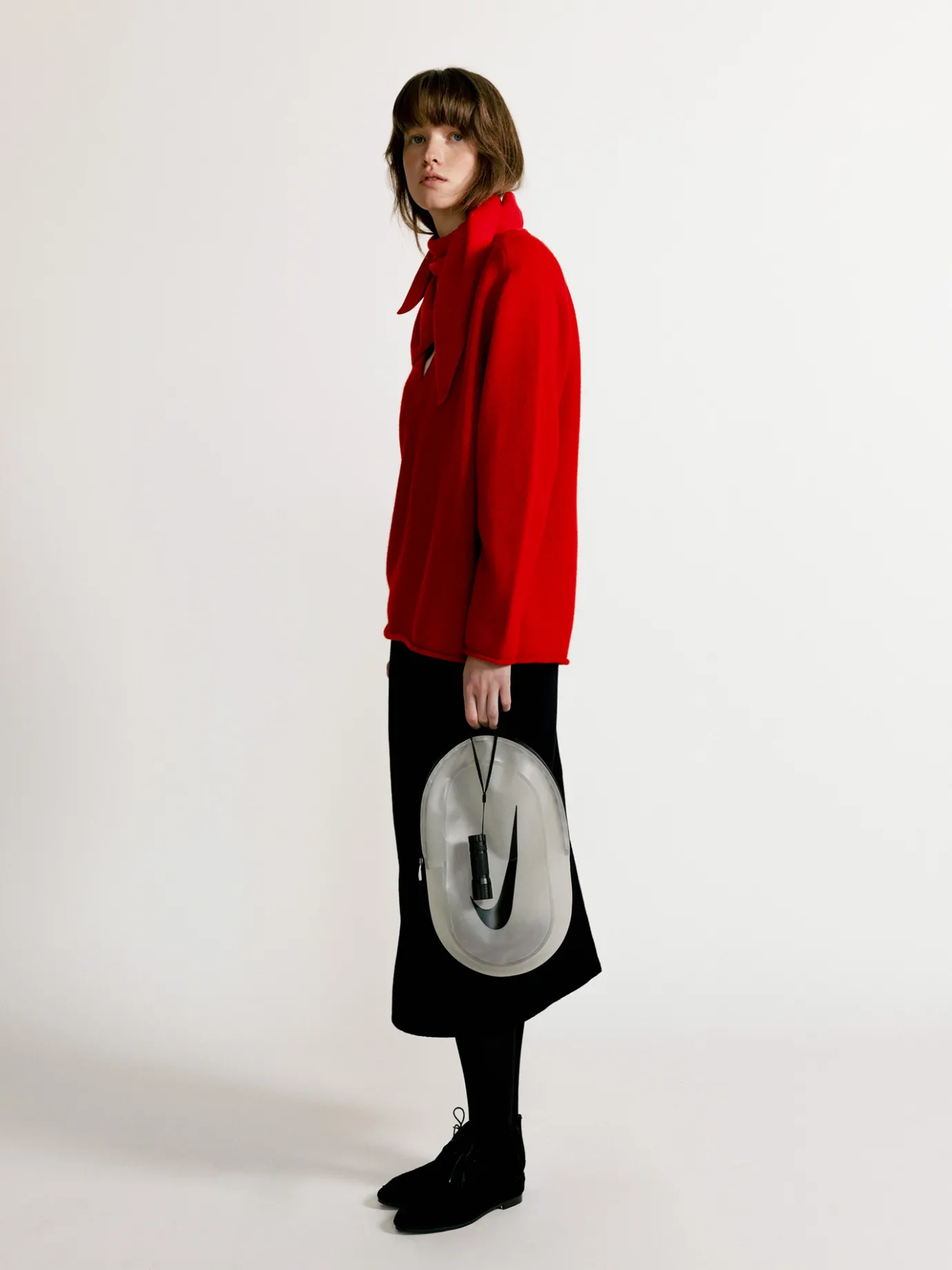 This is a basic design knit pullover with a deep V-neckline. The deep neckline makes the neckline look long and thin, creating a feminine atmosphere. It is highly versatile as it can be layered with various innerwear. It combines the elasticity and durability of wool with the lightness and softness of cashmere, boasting excellent wearability and warmth, and provides an overall loose silhouette and roomy fit. The hem and sleeves are designed to roll naturally without any special treatment, adding a casual yet natural atmosphere.