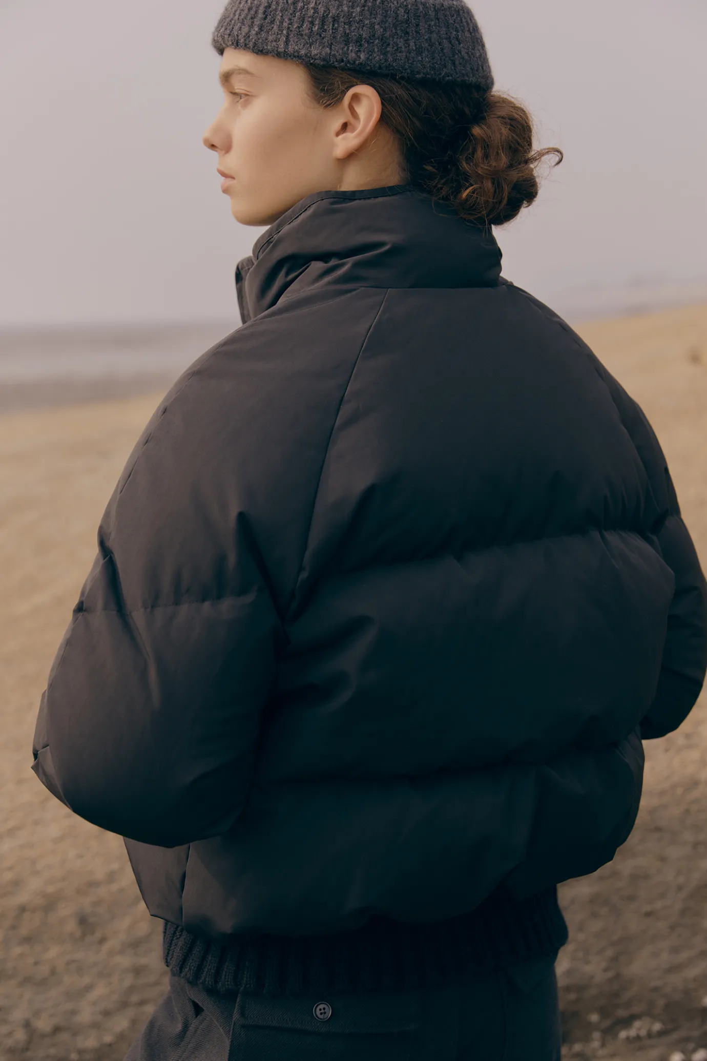Nothing written Outwears-11ST / Cropped string puffer jacket (Black)