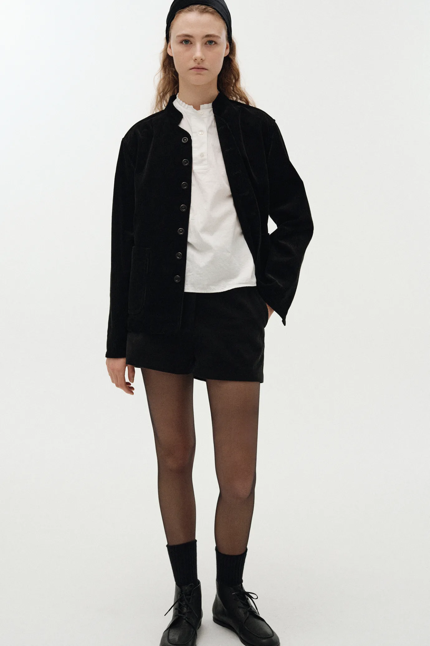 This is a classic corduroy jacket designed to be inspired by military uniforms. Generous silhouettes and relaxed sleeves provide free movement and are made of corduroy fabric with a soft touch to complete a clean and solid silhouette.It is made of 100% cotton material that is lightweight, durable, and creates a subtle and elegant gloss. The tightly arranged nut button closure adds vintage sensibility and is an ideal item for the change of seasons with an appropriate thickness. Mandarin collars add sophisticated details to suit a variety of styling flexibly, and flap pockets on both sides increase practicality.