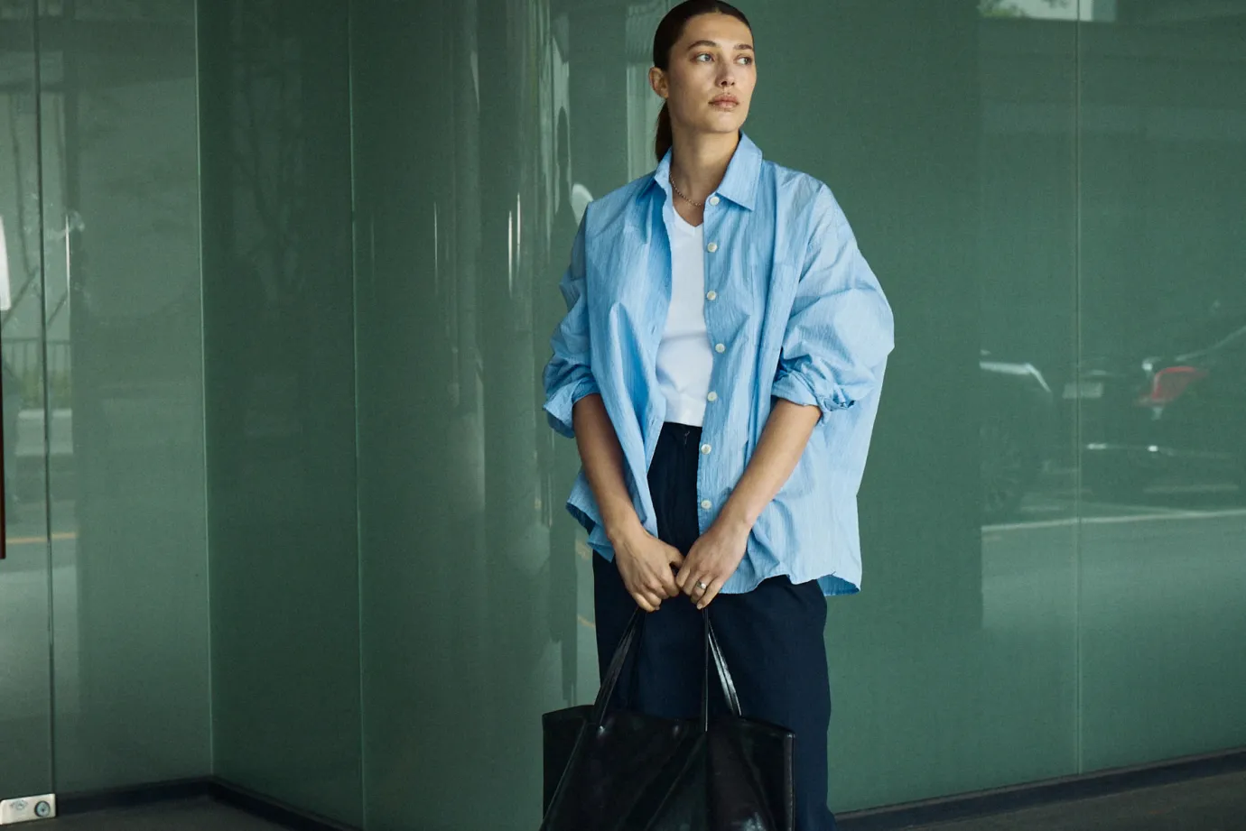 This is an oversized shirt with a subtle stripe pattern. The thin fabric with vertical stripes stands out, completing a comfortable and stylish look in the summer, and the large mother-of-pearl button closure structure makes it an item that can be worn like a jacket. The high-quality cotton and nylon blend material from STYLEM TAKISADA-OSAKA is very soft and has a great feel, providing a comfortable fit, and the bio-washing treatment makes it durable and less likely to deform or shrink even after long-term wear. It keeps you cool and comfortable in the summer, and the natural wrinkles that occur when worn create a natural mood. The long length that covers the hips and the loose silhouette are casual and comfortable, and are perfect for outdoor activities, and the left outer pocket structure and back pleat details were added.