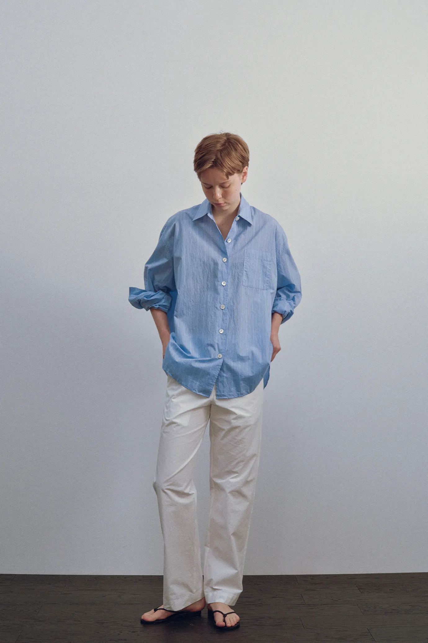 Nothing written Shirt-2ND / Timon striped cotton shirt (Blue stripe)