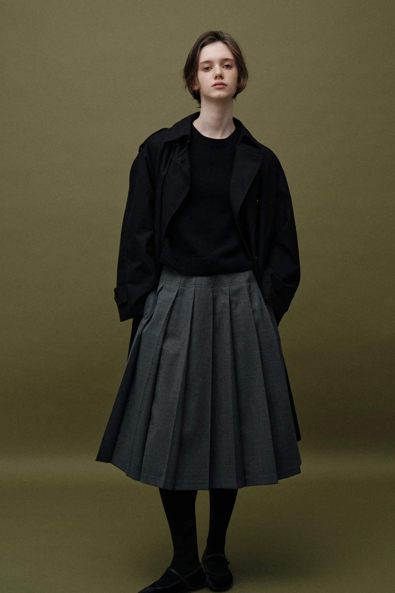 This is an elegant classic A-LINE skirt featuring wide pleat details. Completed with a minimal silhouette and calm colo…