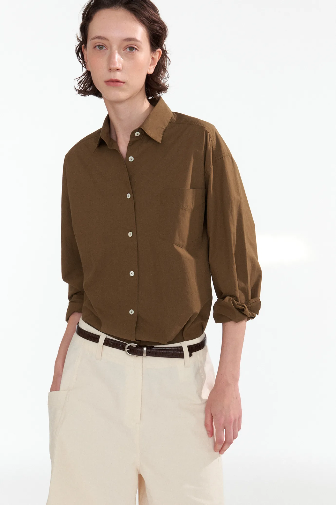 A basic belt with a lizard texture. The soft feel and flexible cowhide are used, and the size can be adjusted with 7 holes. It can be produced in a formal mood with a slim thickness and is composed of a round buckle made of antique silver material.