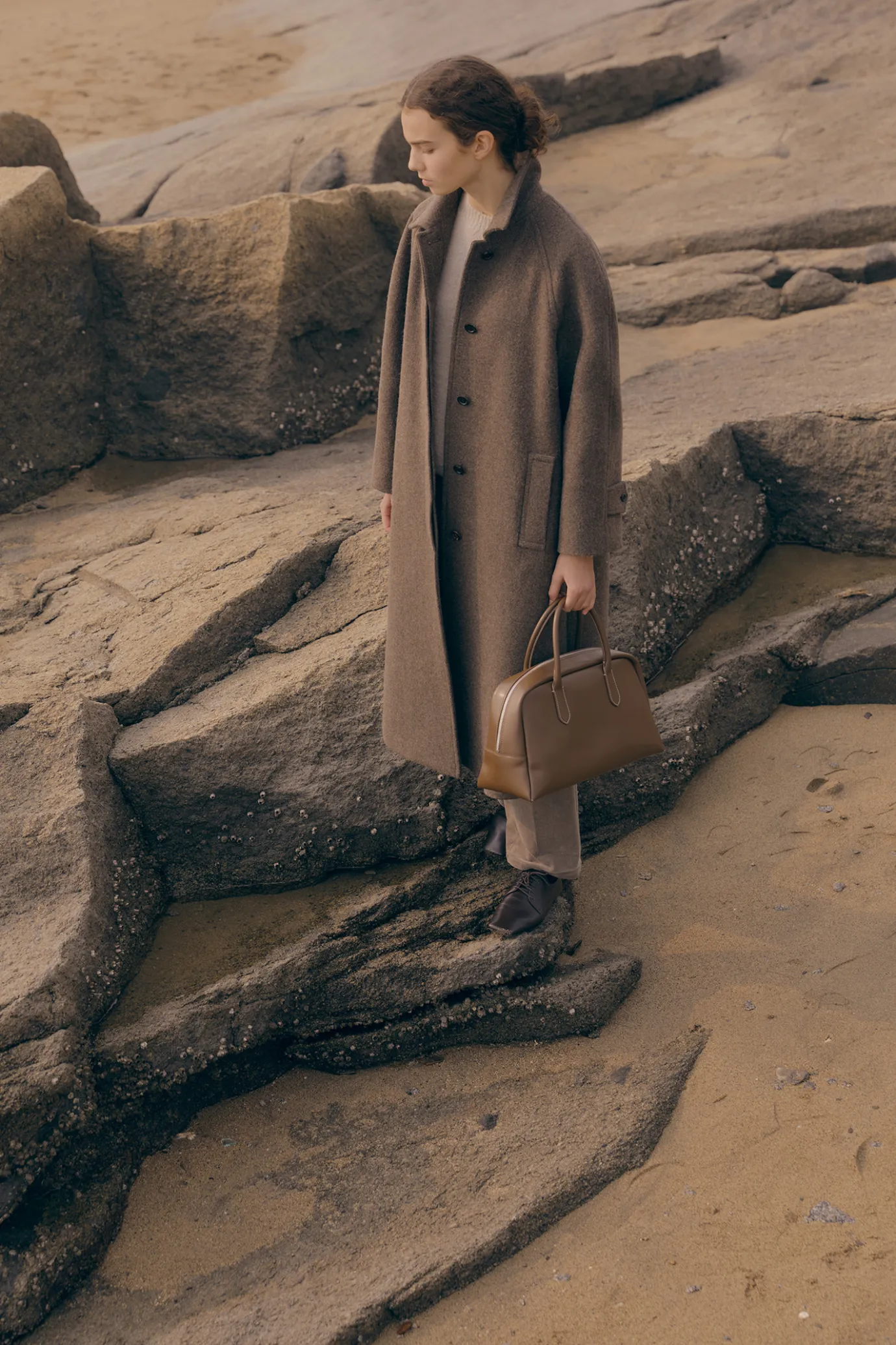 YKK zipper closure structure. Natural cowhide tote bag with a solid yet soft feel with a semi-hard texture. Four-sided stitching on the bottom and easy storage in the inner pocket. Surface treatment of natural leather makes it resistant to discoloration and scratches, and features excellent durability and resilience. Please refer to the detail cut for product color.