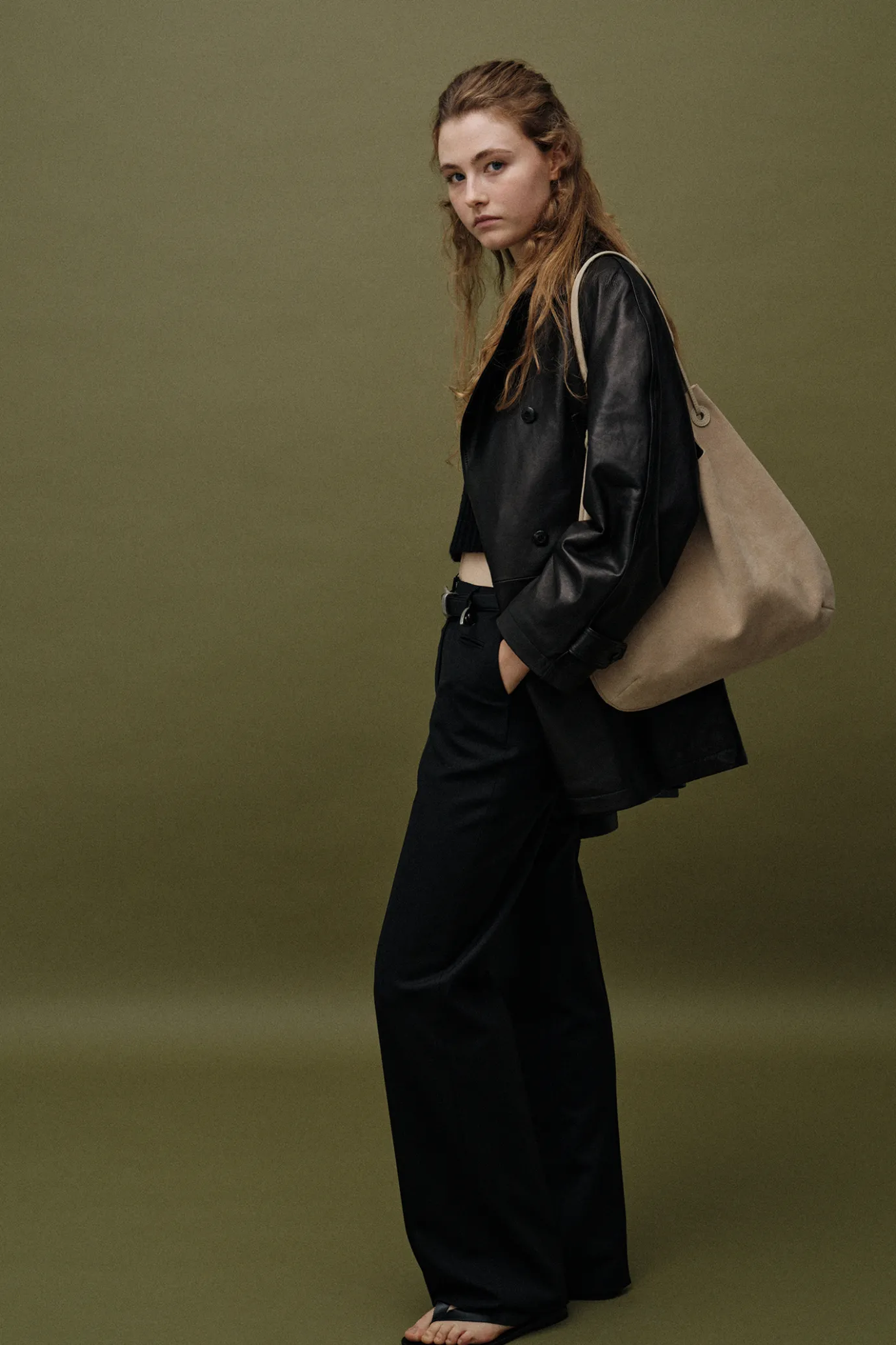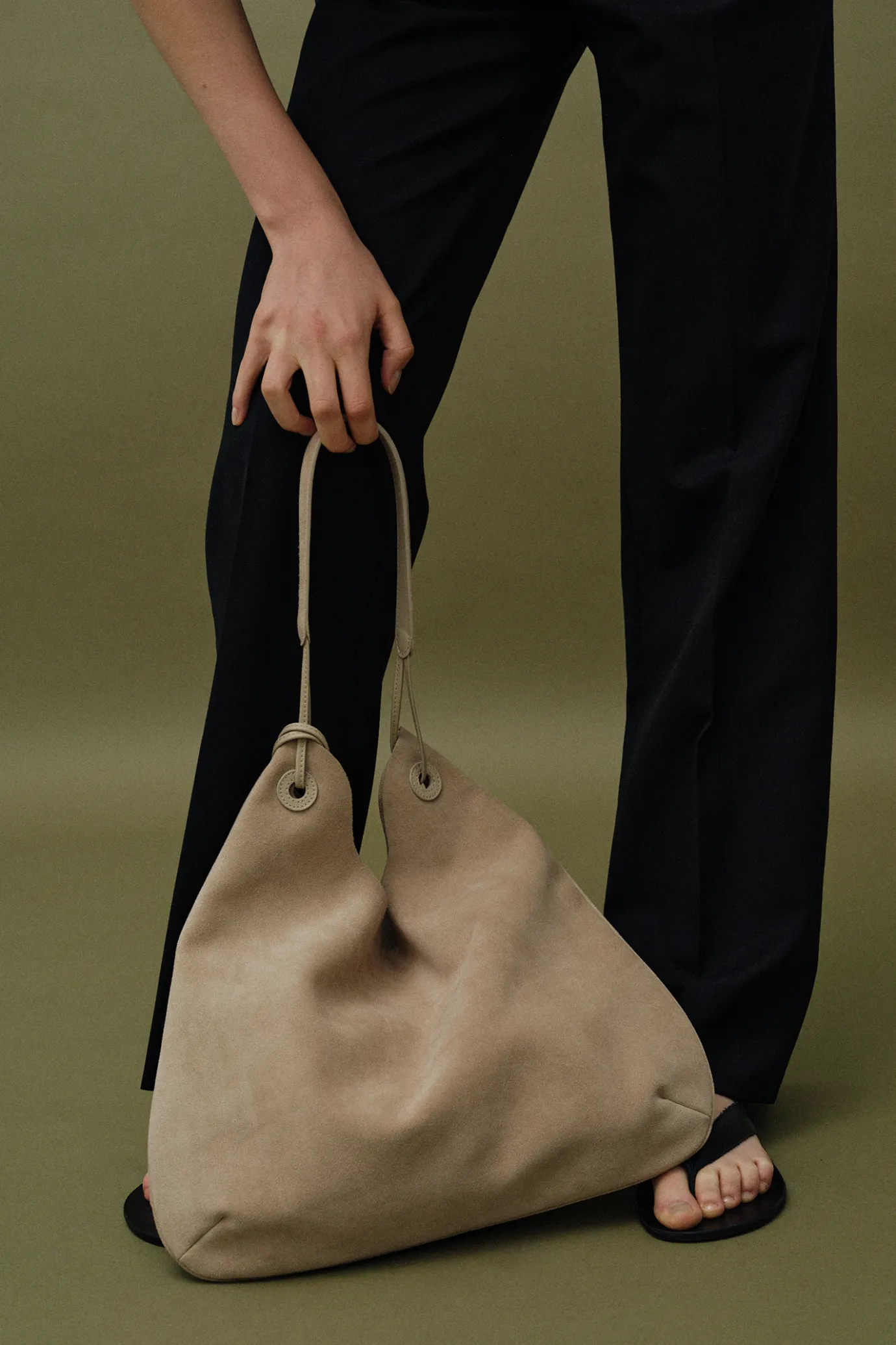 This is a suede hobo bag with a soft texture. The unique delicate texture and subtle gloss add to the sophisticated cha…