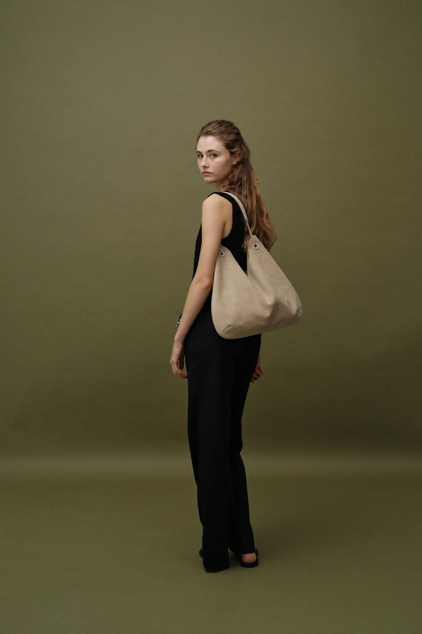 Nothing written Bags-3RD / Medium shoulder hobo bag (Light beige suede)