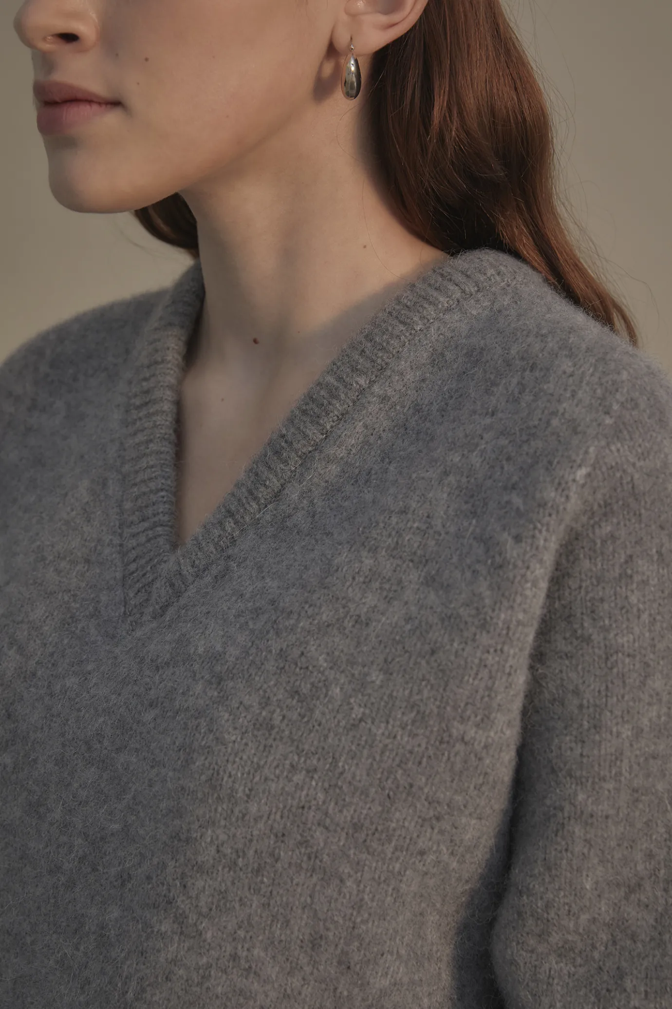 Neutral fit V-neck sweater. Basic design with a relaxed silhouette that is great to wear with innerwear. Baby alpaca bl…
