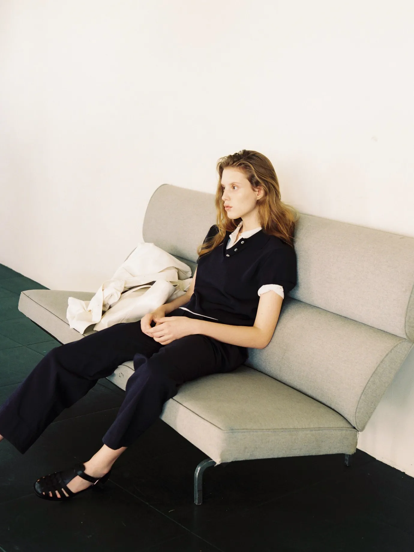 Nothing written Knitwear-2ND / Cotton knit polo (Navy)