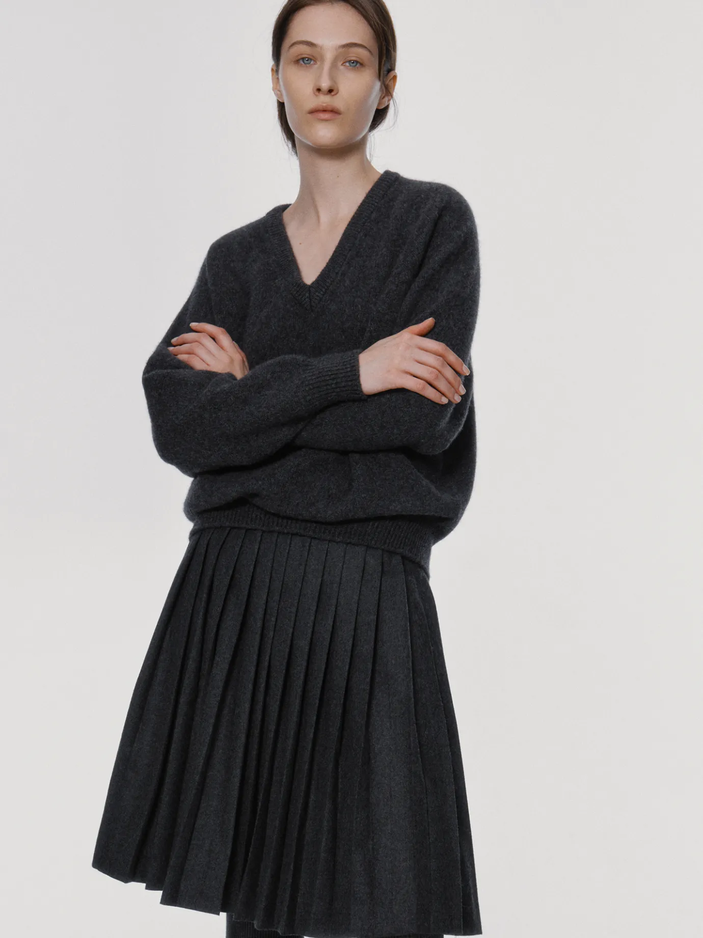 This is Nothing Written's signature item that I take out and wear every winter. It is a neutral-fitting V-neck sweater with a relaxed silhouette that is great to wear with an inner layer. It boasts high heat retention with a blend of baby alpaca and wool materials that stand out for their soft texture, and the sleeves and hem contain spandex to minimize deformation.