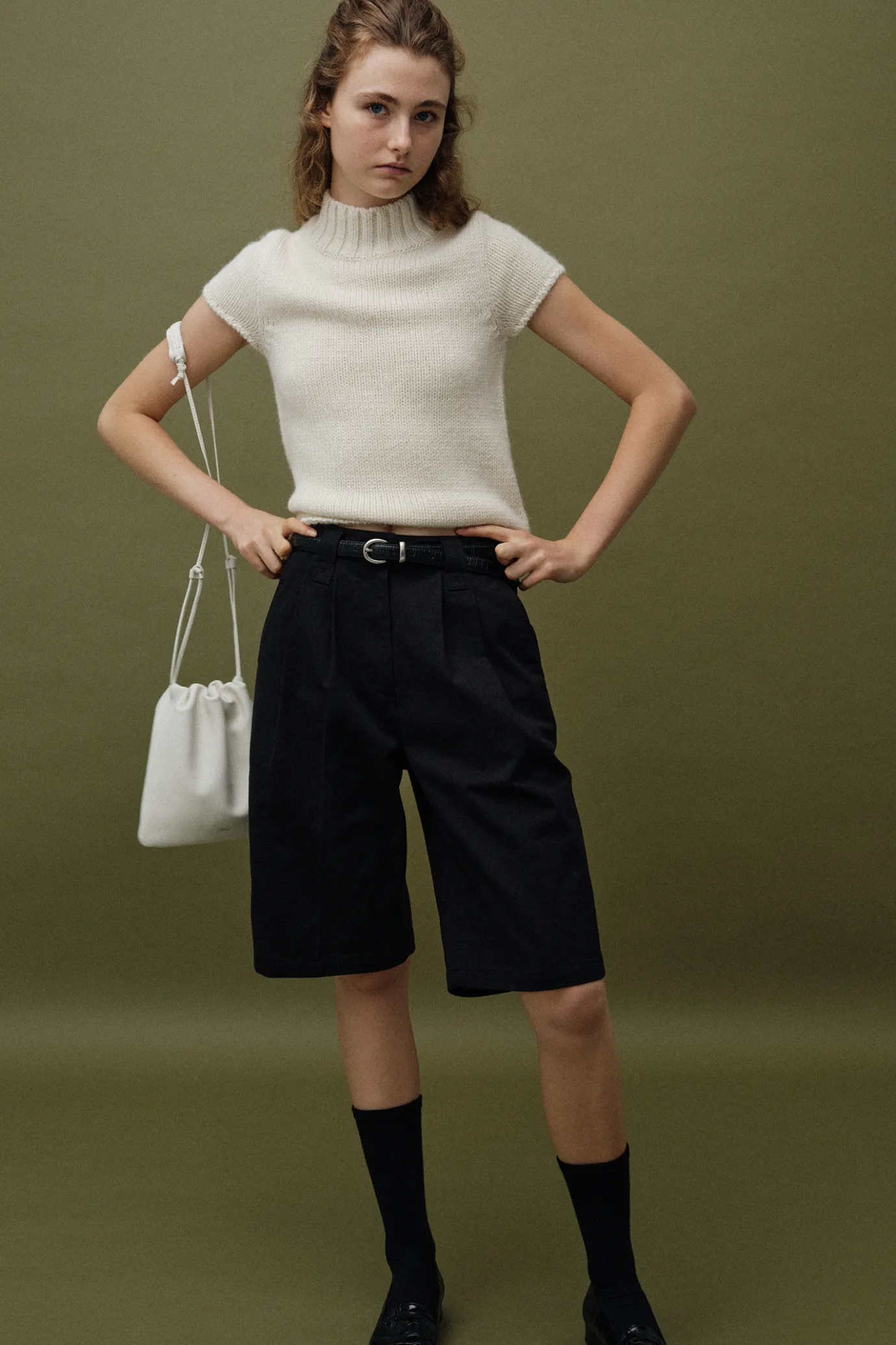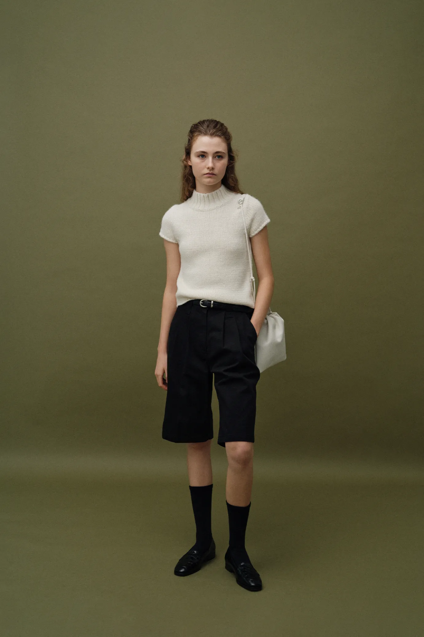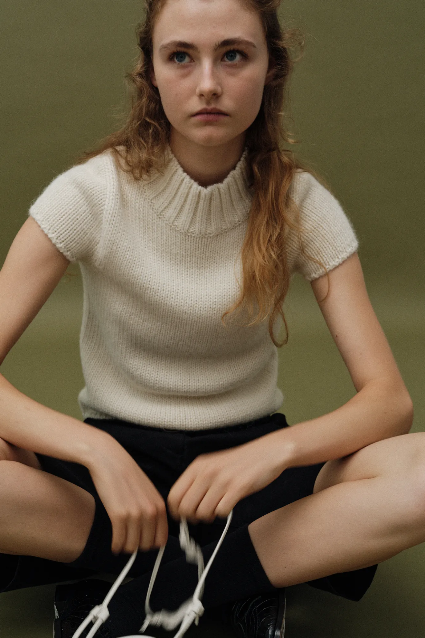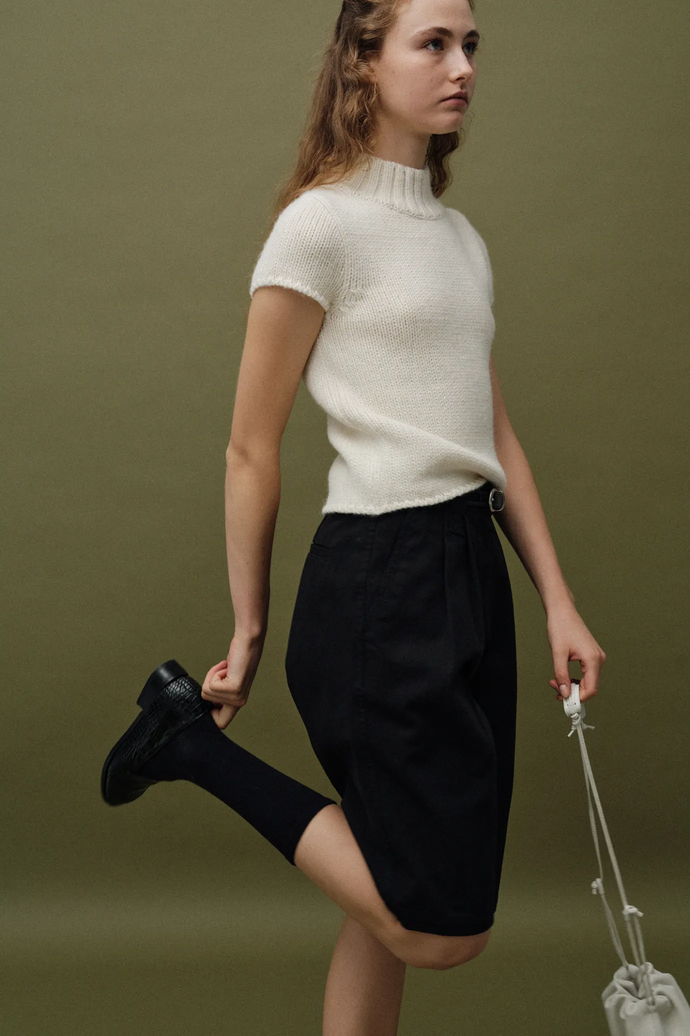 It is an alpaca blend half-neck knit short-sleeved with a cozy touch and delicately brushed hair. With the unique soft and luxurious touch of alpaca, it can be worn comfortably without irritation to the skin and provides excellent warmth, so it can be used in various seasons.The stylish half-neck design and basic silhouette create a neat and trendy mood, and the color composition that is faithful to the basics harmonizes with any clothes, making it highly useful as a daily item.It is also durable with an acrylic blend and will remain without deformation after long periods of wear.