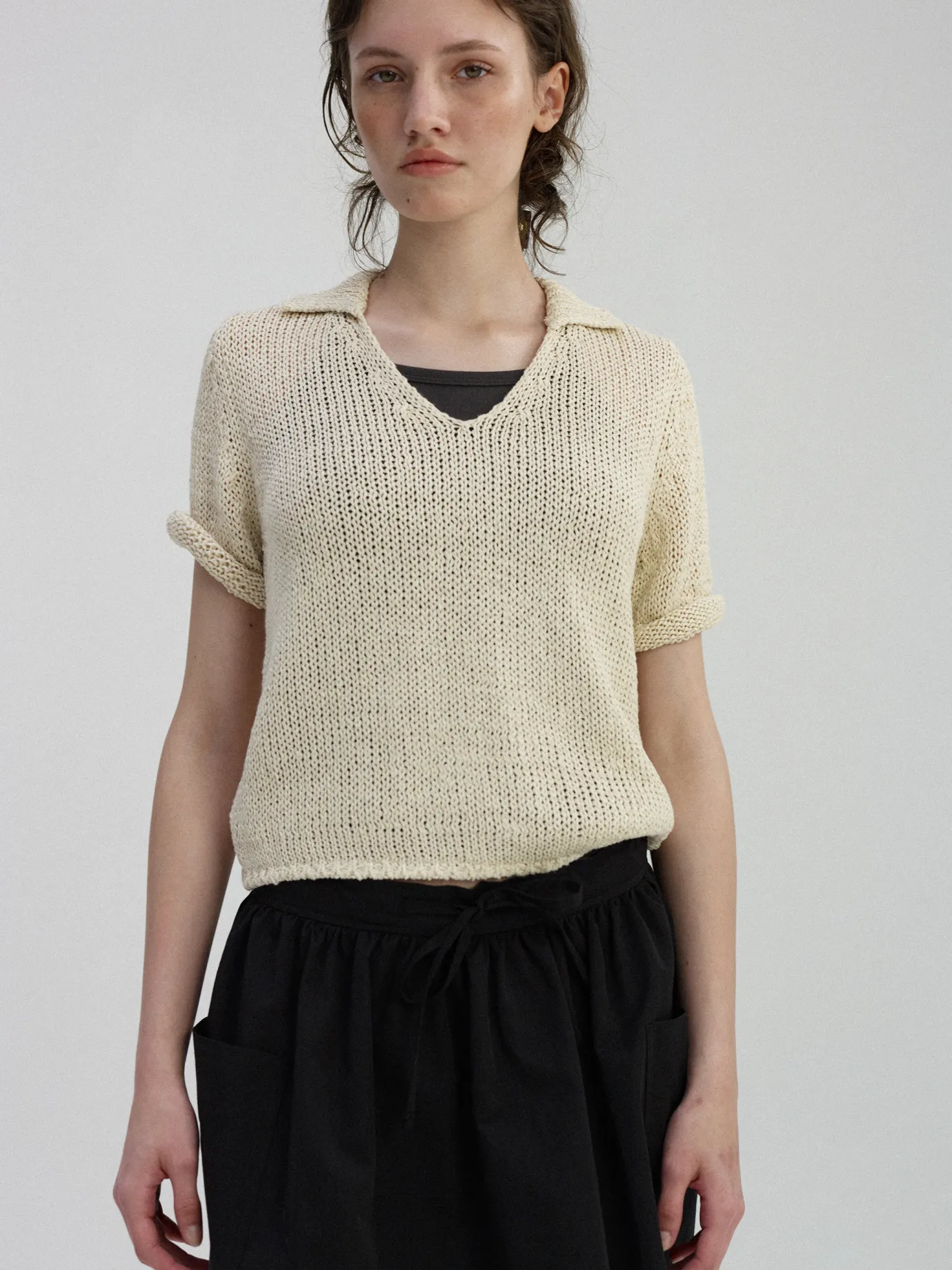 Nothing written Knitwear-Paper polo pullover (Ivory)