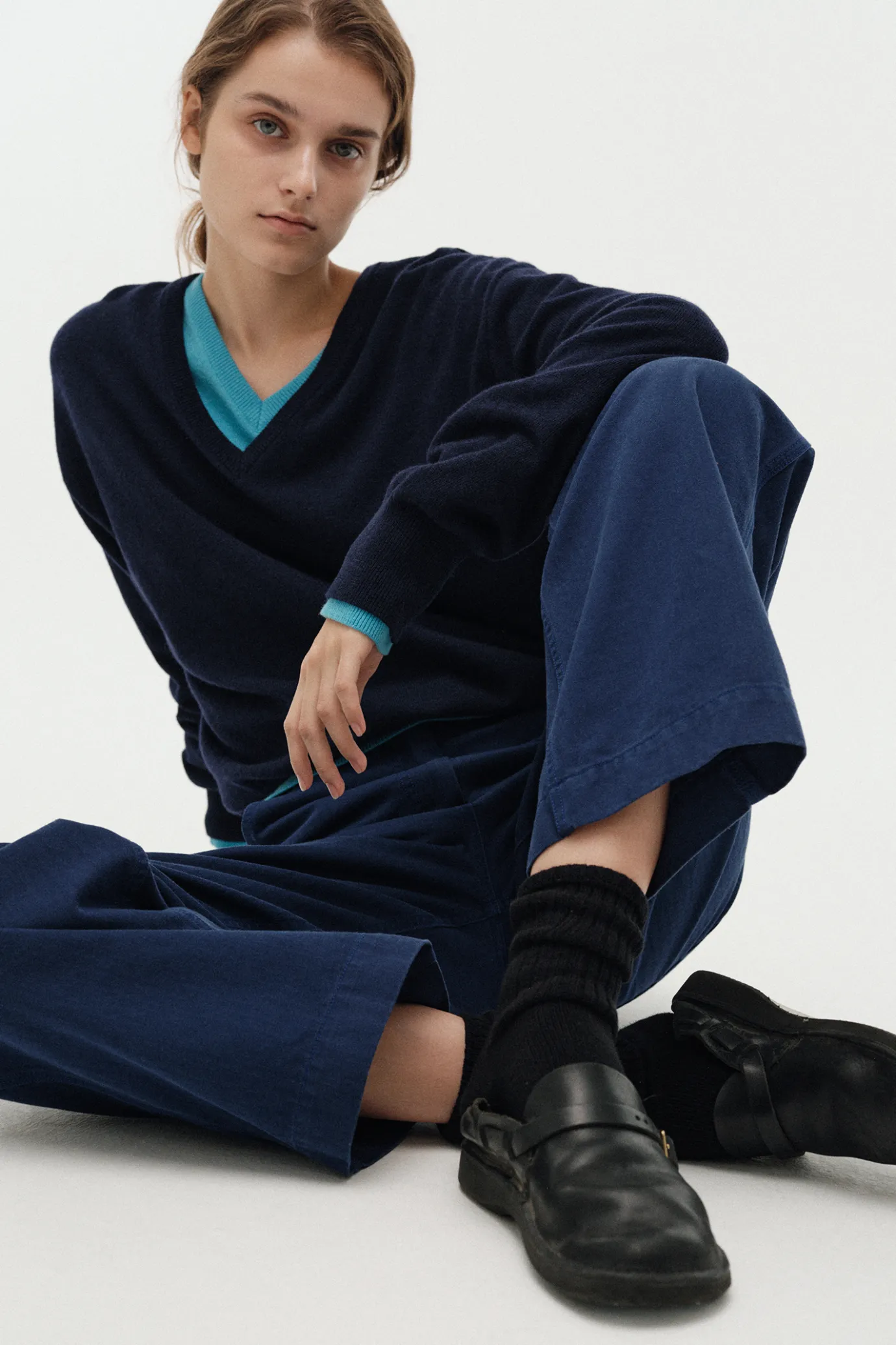 Nothing written Knitwear-Puno v-neck pullover (Navy)
