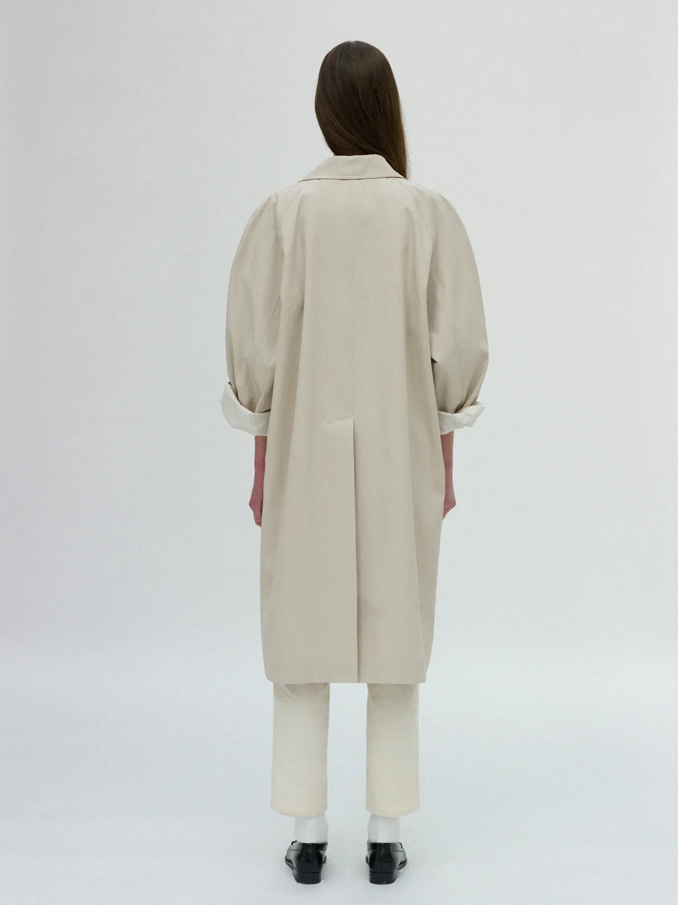An oversized single trench coat with an attractive voluminous shoulder. Made of 100% gabardine COTTON material with a na…