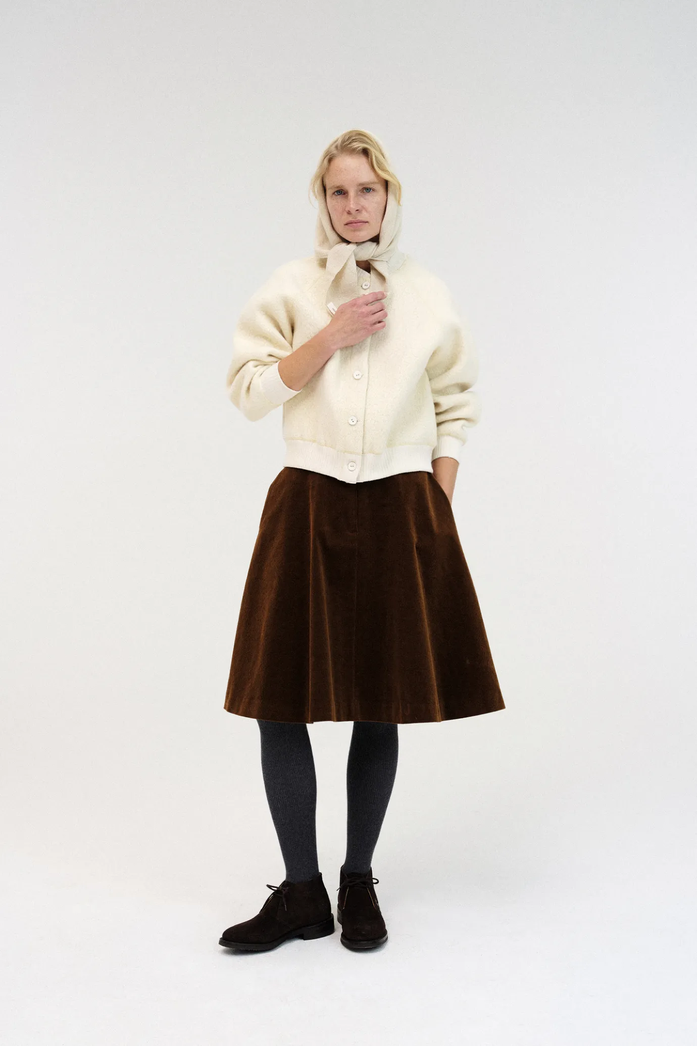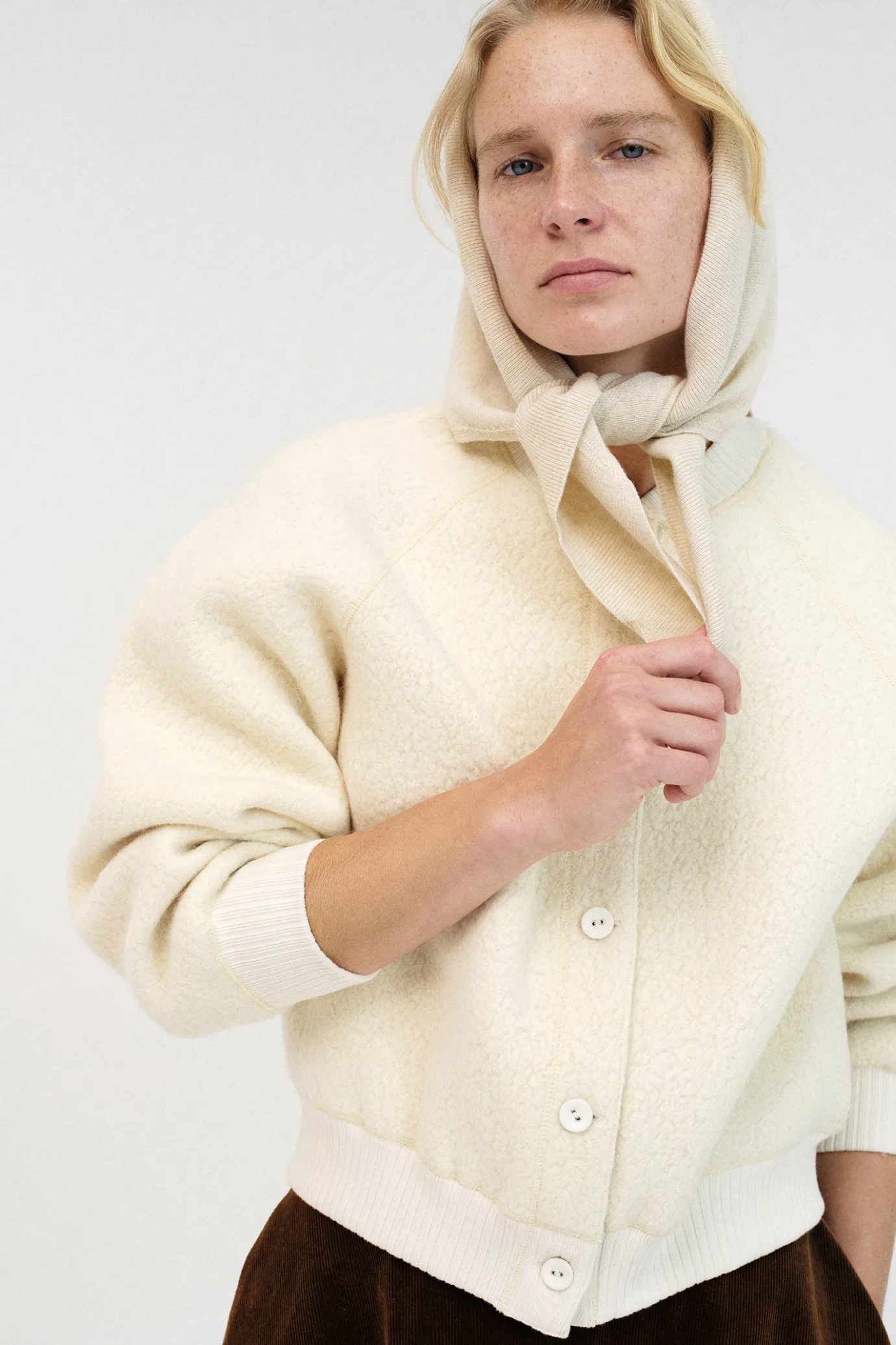 This is a leglen sleeve jacket made of alpaca material that cannot be missed in winter.It is characterized by a living hair feeling unique to alpaca that feels cozy and a brushed yarn feeling, and boasts excellent warmth with a mixture of wool and alpaca. It is finished with a sturdy ribbed cotton spandex lip tissue on the neckline, sleeves and hamline to show a rich silhouette with elasticity and volume. It is good to wear under an outerwear in midwinter and can be styled in various ways with light weight. It is finished with seamless sewing to reduce friction on the fabric and skin so that you can feel comfortable wearing even in fierce movements, and consists of five wrapping buttons.