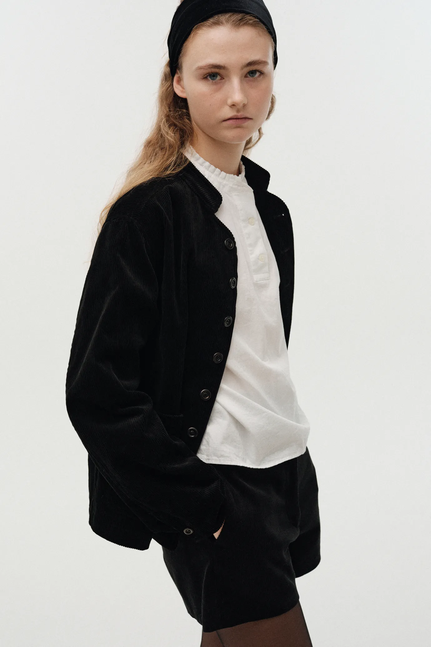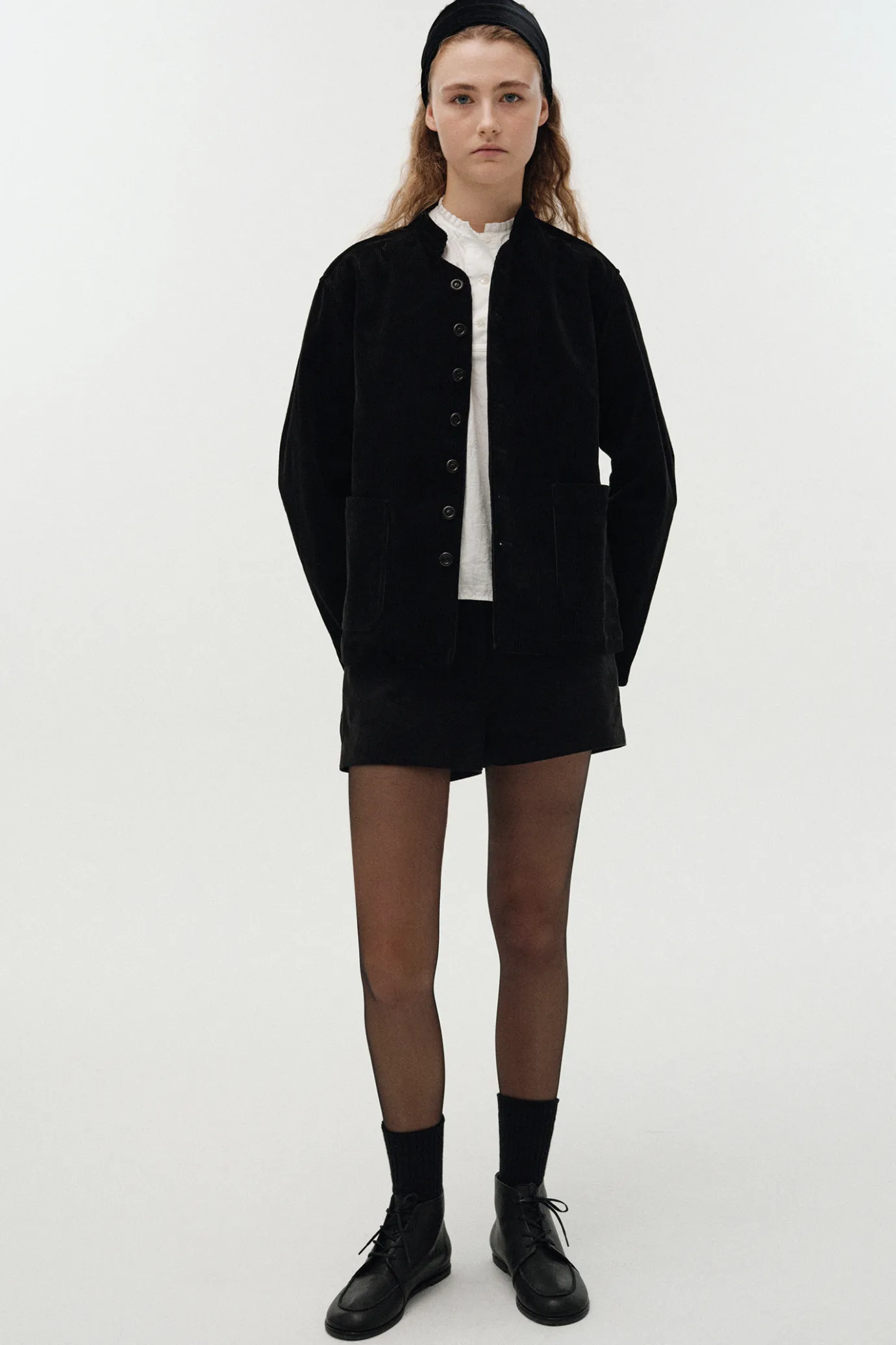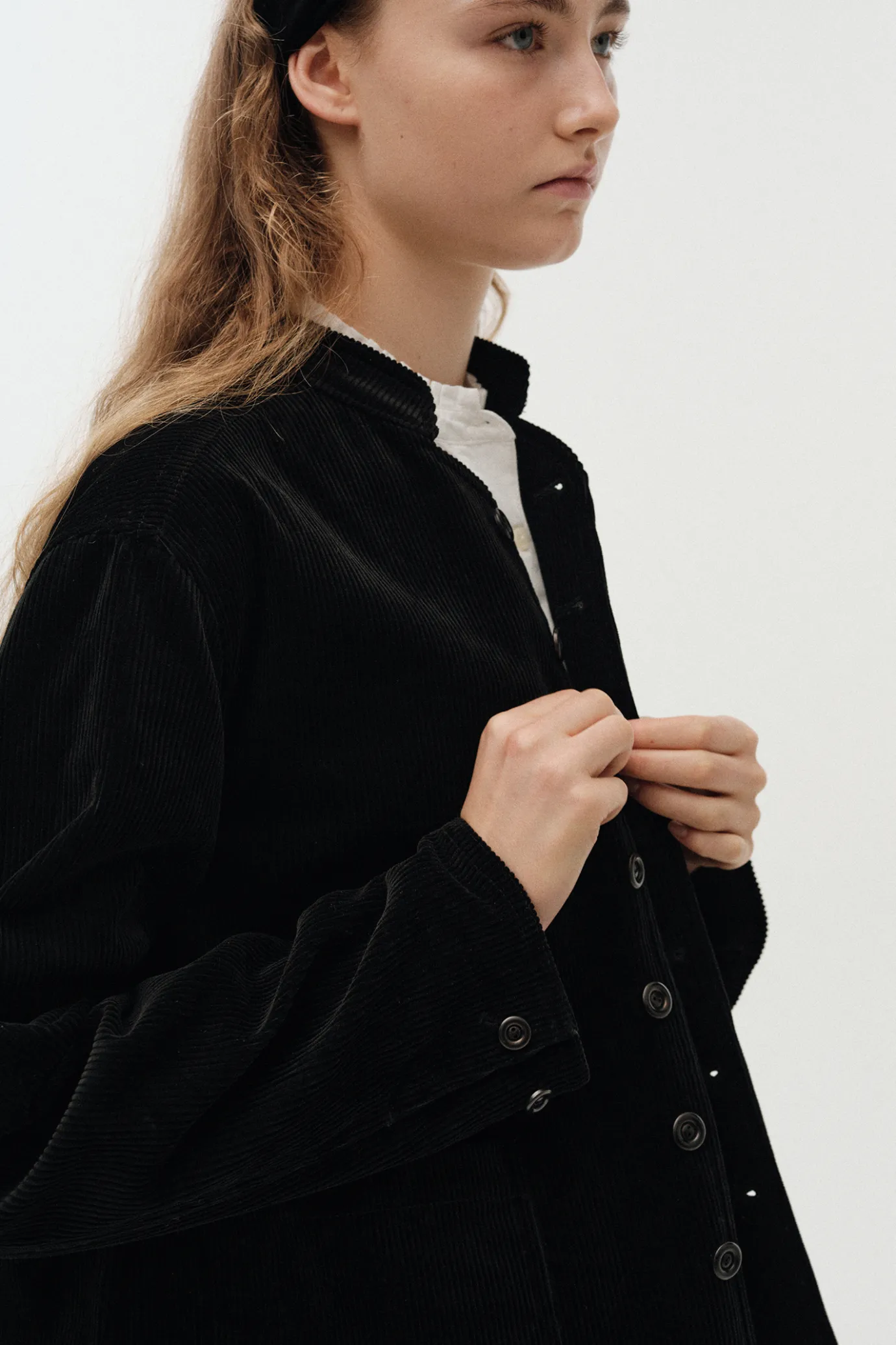This is a classic corduroy jacket designed to be inspired by military uniforms. Generous silhouettes and relaxed sleeves provide free movement and are made of corduroy fabric with a soft touch to complete a clean and solid silhouette.It is made of 100% cotton material that is lightweight, durable, and creates a subtle and elegant gloss. The tightly arranged nut button closure adds vintage sensibility and is an ideal item for the change of seasons with an appropriate thickness. Mandarin collars add sophisticated details to suit a variety of styling flexibly, and flap pockets on both sides increase practicality.