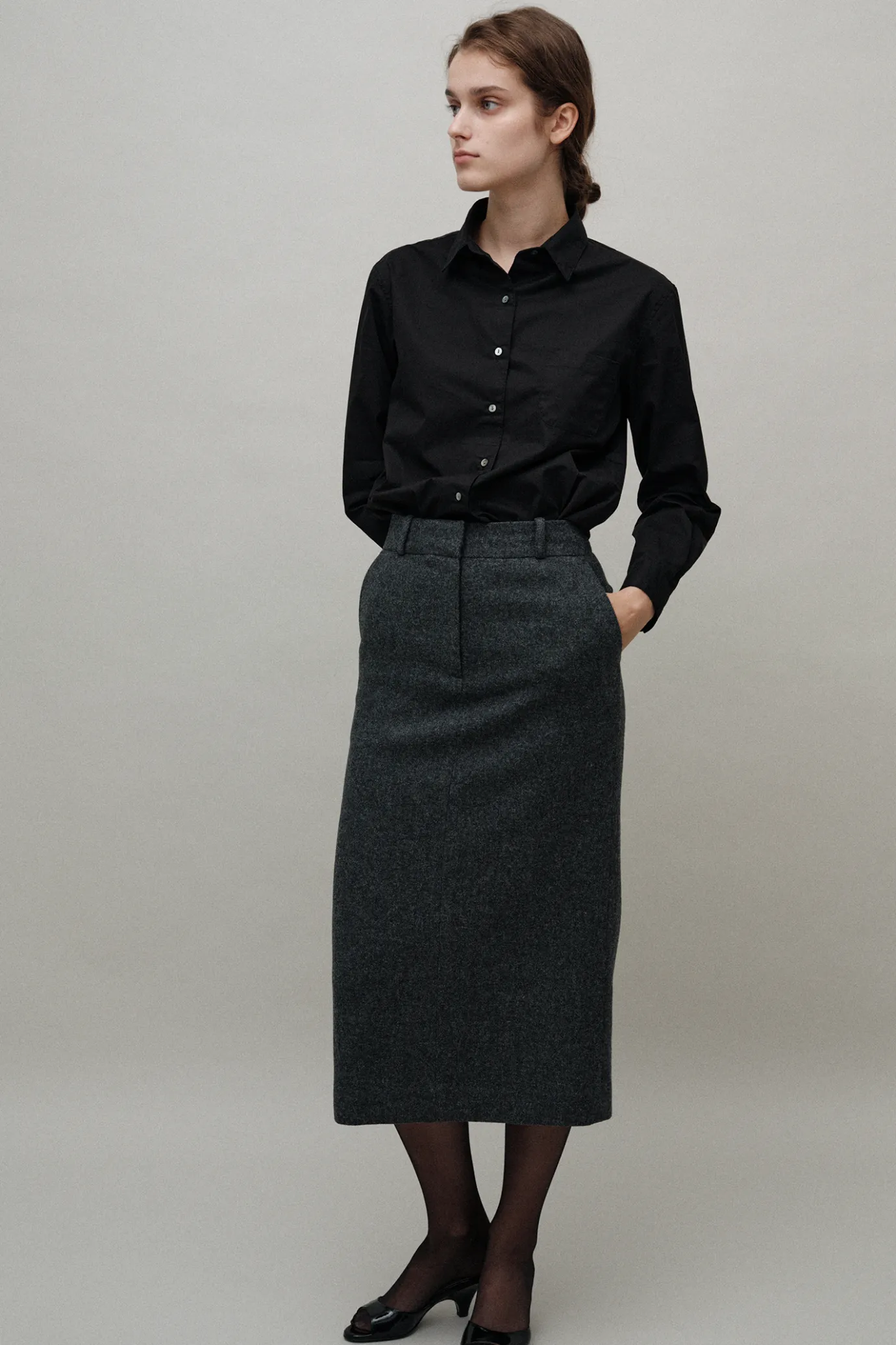 Nothing written Shirt-Classic standard cotton shirt (Black)