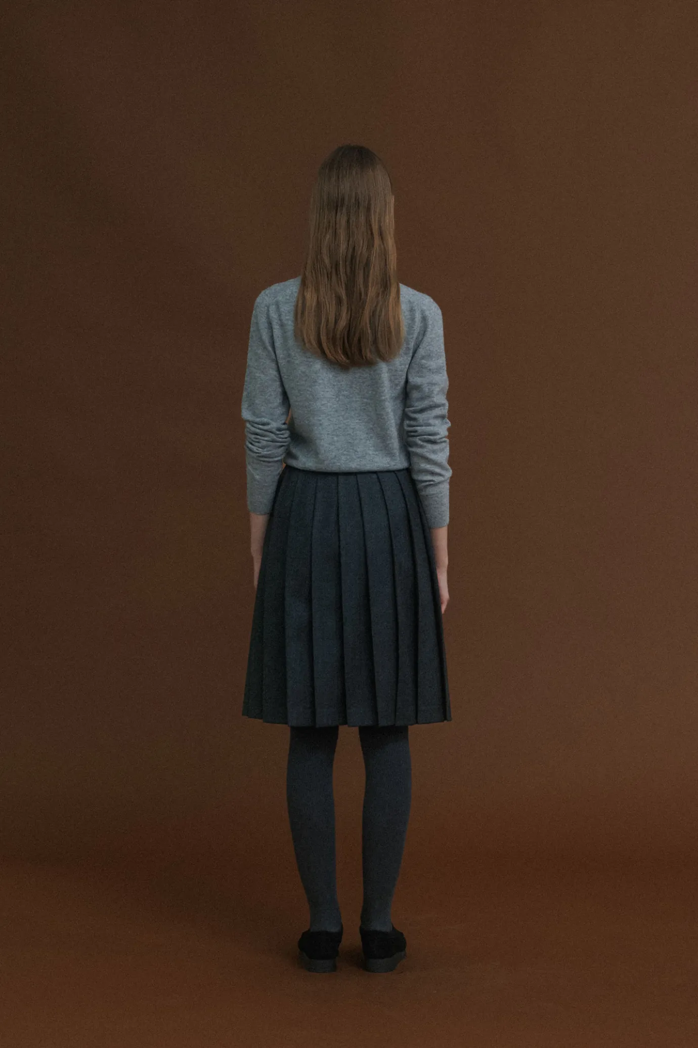 It is a midi-length A-LINE pleats skirt with a classic mood with wide pleats.It is an item that can be styled in a variety of ways with a minimal silhouette and calm colors. With high WOOL content, pleated pleats are added to the powerful fabric to create a rich and voluminous line. The side zipper closure structure and lining provide a comfortable and stable fit.