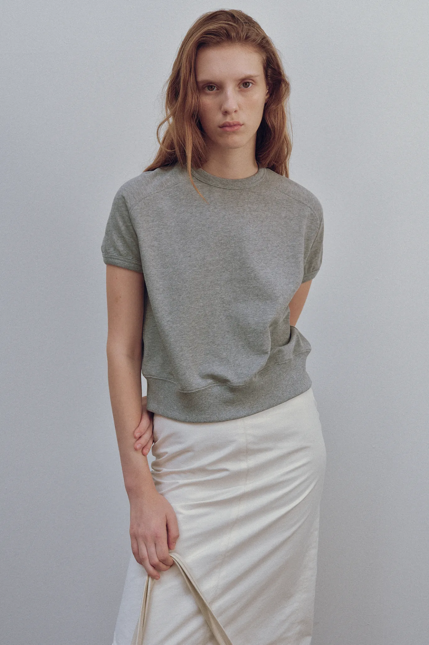 This is a short sleeve sweatshirt with a basic design.Raglan sleeves provide a naturally falling sleeve line and a comfortable fit.It is made of a cotton and linen blend that is solid, light, and cool, so it can be worn casually not only for everyday activities but also for outdoor activities or sportswear. It is a highly utilized product that is composed of basic colors and is good for styling with a variety of products, and the elasticity is increased by finishing with the neckline, sleeves, and lip tissue at the bottom of the waist.